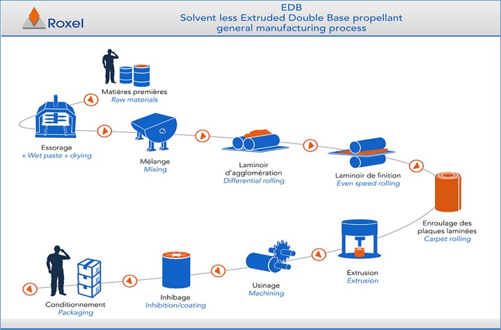 고체로켓의 제조 공정은 추진제 그레인의 중간에 공간을 만들려고 코어(core)와 지그(Jig)를 이용하여 연소 시작 표면을 만든 추진제는 그레인(grain)이라는 점탄성 물질로 외형은 지우개와 비슷하다. 이 그레인은 구조의 일체성을 유지하는 것이 가장 중요하며, 보관 중이거나 지상 수송 및 비행 중에 받는 하중으로 변형 또는 파괴될 수 있다. 또한, 장기간 보관하면서 노화가 발생하여 그레인이 변질하고, 추진성능이 저하할 수 있으므로 열화 속도가 느린 것이 바람직하다. 화학 물질의 경년변화를 고려하여 고체로켓은 제조 후 몇 년간의 유효 기간을 마련하고 엄격하게 관리한다. 최근은 유효 기간이 장기이다. 고체로켓 추진제의 연소는 그레인의 중간에 만든 빈 곳에서 시작하고, 점차 외부로 확대하여 연소관의 내벽에 부착한 단열재에서 종료한다.