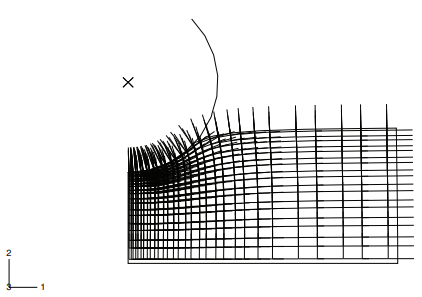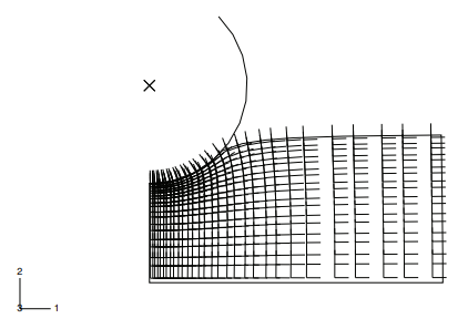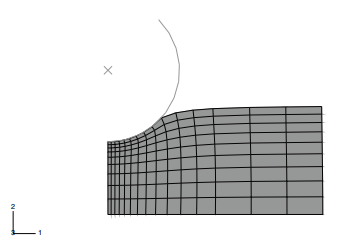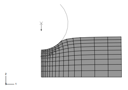 1. 메뉴에서 Plot → Deformed Shape 를 선택한다 . 원형을 마지막으로 표시했을 때와 같은 증분과 스텝으로 변형이 표시된다 . 또한 , 이전에 설정한 공통 표시 옵션이 그대로 사용되므로 , 요소 라벨도 표시된다 .