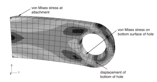 요소망 세분화는 연결용 러그의 접합부에서 계산된 응력을 크게 변화시킨다. 이 응력은 요소망 세분화에 따라 계속 증가한다. 응력의 특이성은 부모 구조와 결합하는 표면의 러그 모서리에 있다. 이론적으로 이 위치에서 응력은 무한하다. 따라서 요소망 밀도를 늘려도 이 위치에서 응력 수렴 값을 얻을 수 없다. 이 특이성은 유한 요소 모델에서 사용하는 이상화로 발생한다. 러그와 부모 구조물 사이의 접합부는 날카로운 모서리로 만들고 부모 구조체는 강체로 만든다. 이런 이상화는 응력의 특이성을 만든다. 현실적으로 러그와 부모 구조 사이에 작은 필렛이 존재하며, 부모 구조는 강체가 아닌 변형체로 간주한다. 이 위치에서 정확한 응력이 필요하다면 각 구성 요소 사이의 필렛을 정확하게 만들고(그림 참조) 부모 구조의 강성도 고려해야 한다.