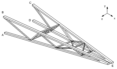 표시 결과(사용자 정의됨)는 다음 그림에 나와 있다. 각 트러스 구조의 상단에 있는 두 개의 절점(점 B와 C)의 곡선은 각 트러스 구조의 아래쪽 절점(점 A와 D)의 곡선을 반전한 것과 거의 같다.