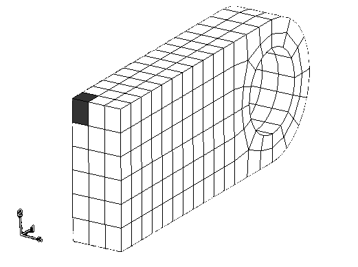 위 그림에 표시된 요소를 고려한다. 이 요소의 적분점에서 응력과 변형률의 이력을 표시한다. 선택한 적분점은 가능한 한 러그 상단에 가깝지만, 구속 절점 옆에 있지 않아야 한다. 적분점 번호는 요소 구성 절점의 순서에 따라 다르다. 따라서 요소의 레이블과 구성 절점의 순서를 지정하여 사용할 적분점을 결정해야 한다.