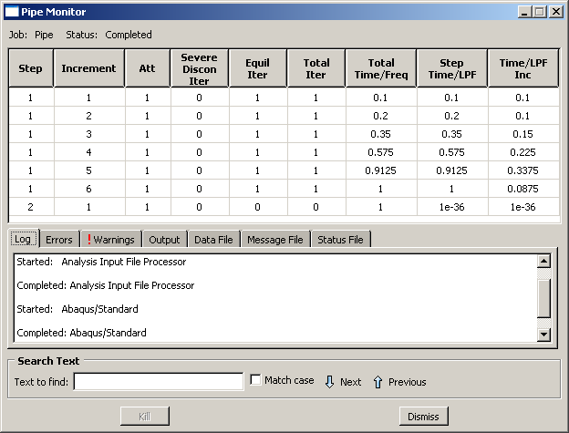 작업이 실행되는 동안 Job Monitor를 확인한다. 해석이 완료되면 그 내용은 다음 그림과 같다.