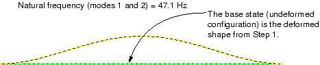2단계는 배관의 고유 진동수를 찾는다. 여기서 증분 하중을 적용할 필요가 없으며, 고정 경계 조건은 이전 일반 단계에서 상속된다. 따라서 추가 하중이나 경계 조건을 이 단계에서 지정할 필요는 없다.