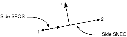 구조 요소, Shell 요소, 강체 요소는 표면, 모서리, 절점 중 하나를 사용하여 서피스를 정의한다. 표면 한쪽을 사용하여 요소의 어느 면이 접촉면을 형성하는지 지정한다. 다음 그림과 같이 요소에서 양의 법선 방향 표면을 SPOS라고 하며, 음의 법선 방향 표면을 SNEG라고 한다. Shell 요소에서 설명한 것처럼 요소에서 양의 법선 방향은 요소를 구성하는 절점의 정의 순서에 따라 다르다. 요소의 양의 법선 방향은 Abaqus/CAE로 표시할 수 있다.