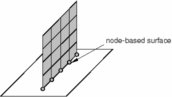 모서리 서피스는 모델의 주변 모서리에서 접촉을 고려한다. 예를 들어, Shell 모서리의 접촉을 만드는 데 사용할 수 있다. 또 다른 방법은 다음 그림과같이 절점 세트와 서피스 사이의 접촉을 정의하는 절점 서피스를 사용하여 같은 효과를 얻을 수 있다.