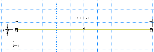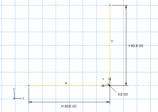 평면 Shell의 기본 기능으로 2차원 변형체 Solid 파트를 작성하여 변형할 수 있는 블랭크를 만든다. 파트의 근사 크기에 0.25를 사용하고, 파트에 Blank라는 이름을 입력한다. 형상을 정의하기 위해 임의 치수의 사각형을 스케치한다. 그다음 직사각형의 수평과 수직 길이에 치수를 입력하고, 치수를 편집하여 파트 형상을 정확하게 정의한다. 최종 스케치는 다음 그림과 같다.
