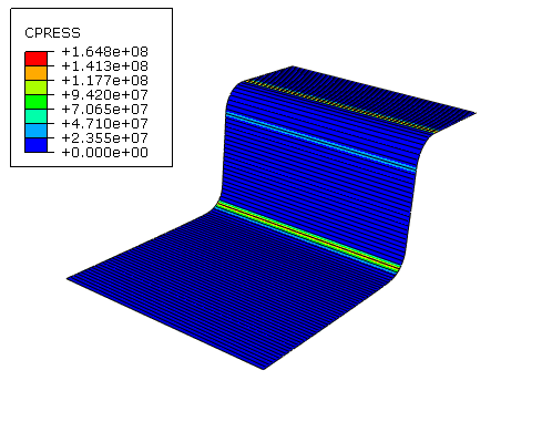 긴 금속판으로 채널을 성형하는 이 해석은 강체 서피스를 사용하고, Abaqus/Standard에서 성공적으로 접촉을 해석하는 데 필요한 복잡한 기술을 설명한다.