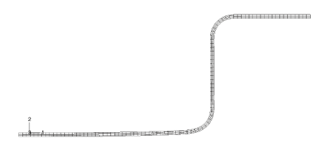 각 모서리를 따라 요소 수를 지정하여 블랭크 모서리에 Seed를 정의한다. 블랭크의 수평 모서리를 따라 100개의 요소를 지정하고, 블랭크의 수직 모서리를 따라 4개의 요소를 지정한다. 각 도구는 해석용 강체 표면에서 만들었으므로 요소망 분할이 필요하지 않다. 이런 공구를 이산화 강체 요소로 만들면 접촉 계산에서 수렴성 문제가 발생하지 않도록 요소망을 충분히 세분화해야 한다. 예를 들어, 다이를 R2D2요소로 만들 때 곡선 모서리는 적어도 20개의 요소로 만들어야 한다. 이렇게 하면 충분히 매끄러운 표면이 만들어지고 모서리 모양이 정확하게 표현된다. 이산화 강체 요소를 사용할 때 항상 충분한 수의 요소를 사용하여 이런 곡선을 만든다.