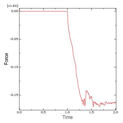 위 그림과 같이 펀치 힘은 2단계에서 약 160 kN으로 빠르게 증가한다. 이 급속한 증가는 전체 시간 1.0에서 2.0 사이에 발생한다.