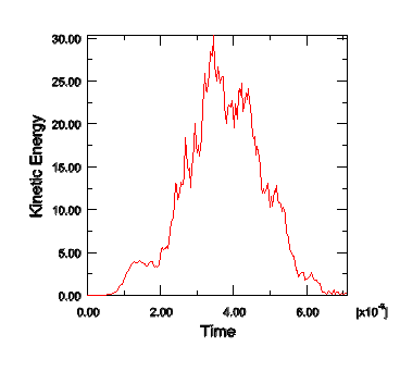 운동 에너지의 시간 기록은 다음 그림과 같다. 운동 에너지의 반응은 블랭크의 성형 과정과 분명히 대응한다. 운동 에너지는 두 번째 단계의 중앙에서 피크에 도달한다. 이것은 펀치 속도가 최대가 되는 시간과 일치한다. 따라서 이 운동 에너지는 적절하고 합리적이다.