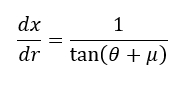 점 (0,1)은 계산된 LRC와 노즐 벽의 교점에서 찾아냅니다. 노즐 벽은 z = 0 지점을 중심으로 하는 주어진 반지름(R_DOWN)의 호로 정의됩니다. 벽에서 유동각 θ는 벽각과 같습니다.