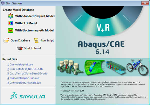 Abaqus/CAE를 시작하면 그림과 같이 Start Session 대화 상자가 나타난다. 그러면 다음과 같은 시작 옵션을 사용할 수 있다.