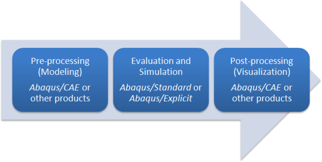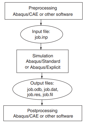 Abaqus의 해석 과정은 전처리, 해석, 후처리의 3단계로 나눌 수 있다. 이 3단계는 아래와 같이 파일을 통해 연결된다.