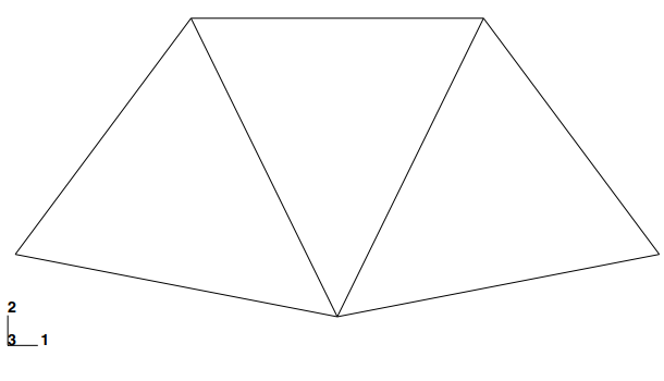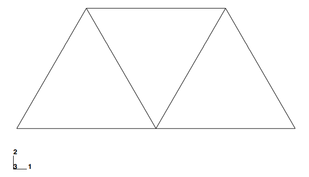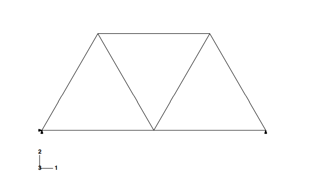 Abaqus/CAE는 천장 호이스트의 Instance를 만든다. 이 예제는 하나의 Instance로만 어셈블리를 정의한다. 프레임은 글로벌 좌표계(오른손 법칙의 직교 좌표계)의 1-2 평면에 표시된다. 뷰포트의 왼쪽 아래 좌표축은 뷰에 대한 모델의 방향을 나타낸다. 뷰포트에 있는 또 다른 좌표축은 글로벌 좌표계의 원점과 방향을 나타낸다(X축, Y축, Z축). 글로벌 1축은 호이스트의 수평축, 2축은 수직축, 3축은 프레임 구조의 면에 수직인 방향이다. 이 예제와 같은 2차원 문제를 Abaqus로 해석하려면 모두 1-2 평면에 평행한 평면 안에 모델이 있어야 한다.