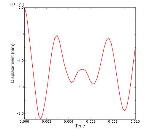 트러스 구조는 하중에 동적으로 반응한다. 이것은 절점 세트 Center의 수직 방향 변위를 그려서 확인할 수 있다. ODB 파일에 저장된 이력 또는 필드 데이터에서 X-Y 곡선을 만들 수 있다. X-Y 곡선은 외부 파일에서 읽거나 Visualization 모듈에서 대화식으로 입력할 수 있다. 생성된 곡선은 나중에 해당 데이터를 조작하거나 그래프 모양으로 화면에 표현할 수 있다. 이 예제는 이력 데이터를 사용하여 곡선을 작성하고 표현한다. 절점의 수직 방향 변위를 X-Y 그래프로 표시하려면 다음과 같이 설정한다.