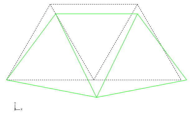 메뉴에서 Plot → Deformed Shape를 선택한다. Abaqus/CAE는 그림과 같이 변형을 표시한다.
