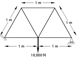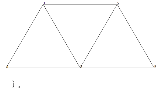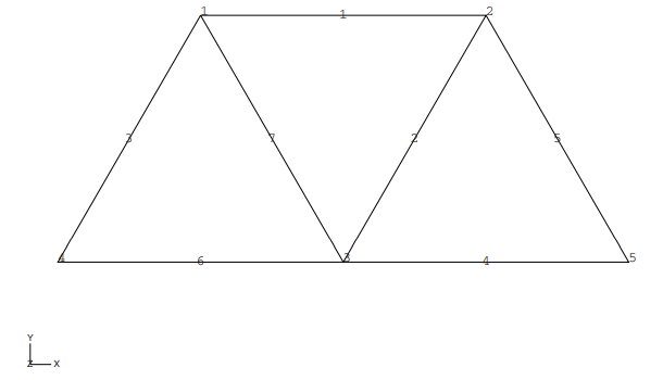 트러스 요소 특성을 정의하려면 재료와 단면적만 필요하다. 프레임 부재는 지름이 0.005m인 원형 단면 막대이다. 따라서 이 부재의 단면적은 1.9635×10-5m2이다.