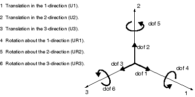 Abaqus에서 변위와 회전 자유도에 사용하는 이름은 그림과 같다.