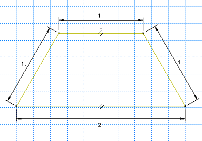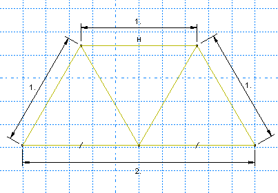 11. 다음 Add Dimension 도구를 사용하여 직사각형의 상현재와 하현재에 치수를 입력한다. 상현재에는 1m의 수평 치수, 하현재는 2m의 수평 치수를 입력한다. 각 부재에 치수를 입력하려면 먼저 선을 선택한 다음 마우스 버튼 1을 클릭하여 치수 문자의 위치를 결정하고, 마지막으로 프롬프트에 새 치수를 입력한다. 끝점이 아닌 선을 선택하면 공간의 선 방향과 관계없이 선의 길이가 구속된다(실질적으로 대각선 치수가 정의된다).