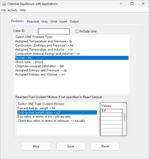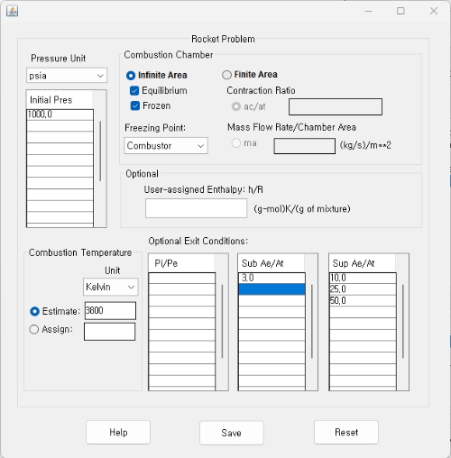 다음은 NASA CEA와 RPA를 사용한 예이다.