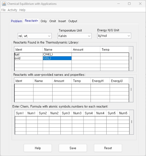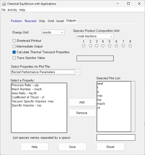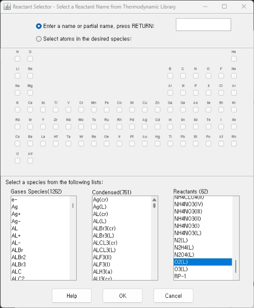 NASA CEA 및 PROPEP 형식에서 화학종 입수